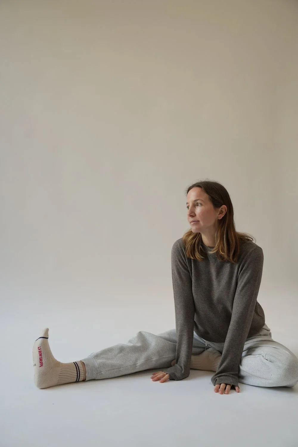 Her teaching has evolved alongside her confidence, becoming slower, more spacious, and more intentional. Guided primarily by voice rather than demonstration, her classes encourage curiosity, self-discovery, and trust in the body, moving beyond achievement-based movement and allowing students to explore at their own pace.